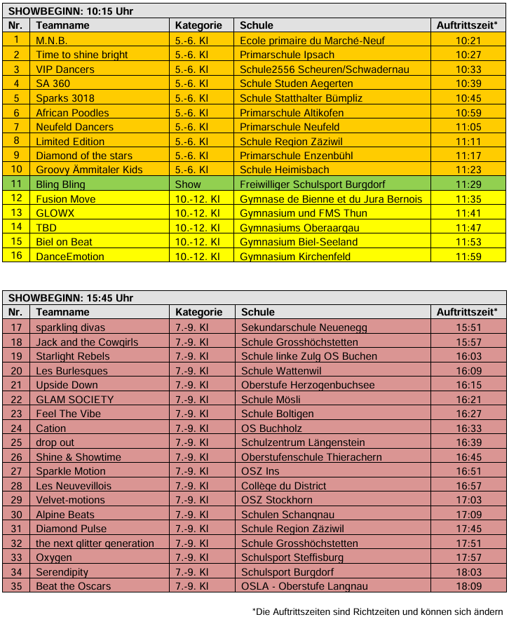 Stimme online für dein Lieblingsteam ab! In beiden Shows wird je ein Publikumsliebling vom BEKB Förderfonds mit einem Gutschein von CHF 500.00 ausgezeichnet. Das Voting wird in beiden Shows nach dem Auftritt des letzten Teams für ca. 5min geöffnet, Zeitangaben ohne Gewähr.